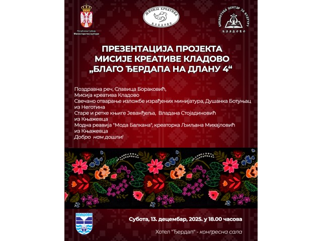 Субота, 13. децембар 2025. у 18.00 часова, конференцијска сала хотела „Ђердап“