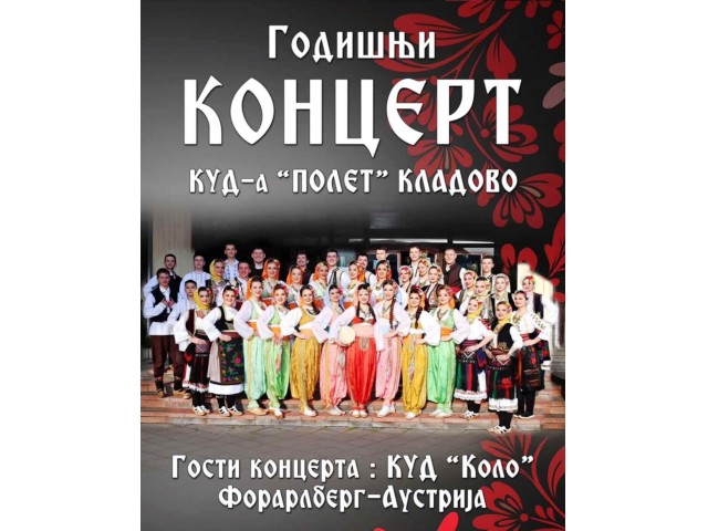 30.05.2025.Концерт фолклорних ансамбала КУД "Коло" Ворарлберг из Беча и КУД "Полет" из Кладова - због јаког ветра, уместо у тврђави Фетислам, концерт ће бити организован у концертној сали Центра за културу у Кладову.