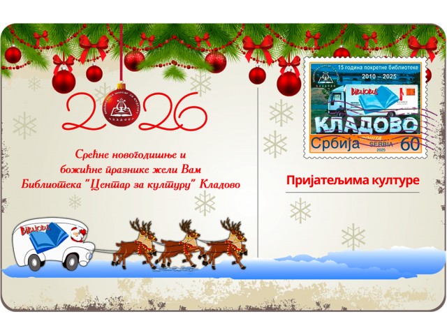 30.12.2025.У сусрет новогодишњим и божићним празницима, Библиотека „Центар за културу“ Кладово упућује најсрдачније честитке свим читаоцима, сарадницима и пријатељима библиотеке.