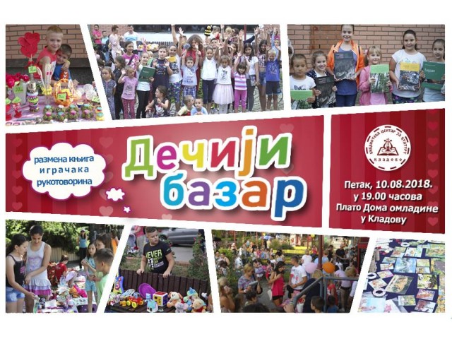 03.08.2018.Pozivamo najmlađe sugrađane da učestvuju na tradicionalnom Dečijem letnjem bazaru razmene knjiga, igračaka, suvenira i raznih rukotvorina.