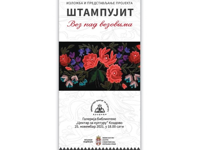 19.11.2021.Biblioteka “Centar za kulturu” Kladovo ima čast i zadovoljstvo predstaviti projekat “Štampujit – Vez nad vezovima” autorke Dušanke Botunjac, akademske slikarke i primenjene umetnice iz Negotina.