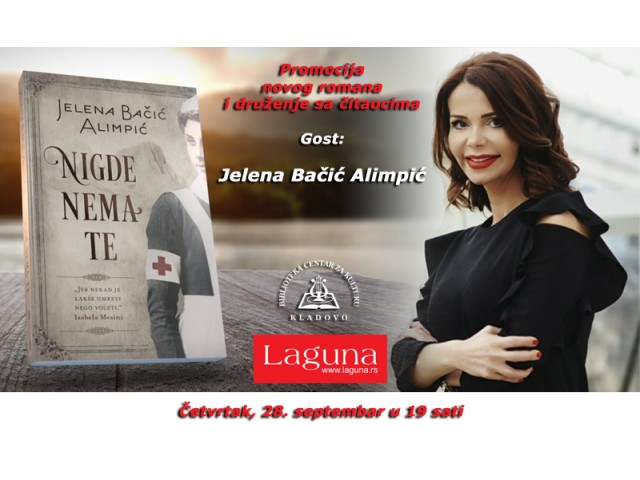 21.09.2017.Jelena Bačić Alimpić, predstaviće u četvrtak, 28. septembra u 19 časova u Biblioteci „Centar za kulturu“ u Kladovu svoju novu knjigu „Nigde nema te“, protkanu najdubljim emocijama i moralnim dilemama.