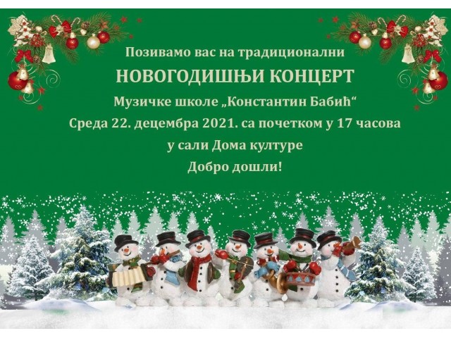 20.12.2021.Pazničnim novogodišnjim koncertom, tradicionalno se predstavljaju učenici Osnovne muzičke škole "Konstantin Babić" Kladovo.