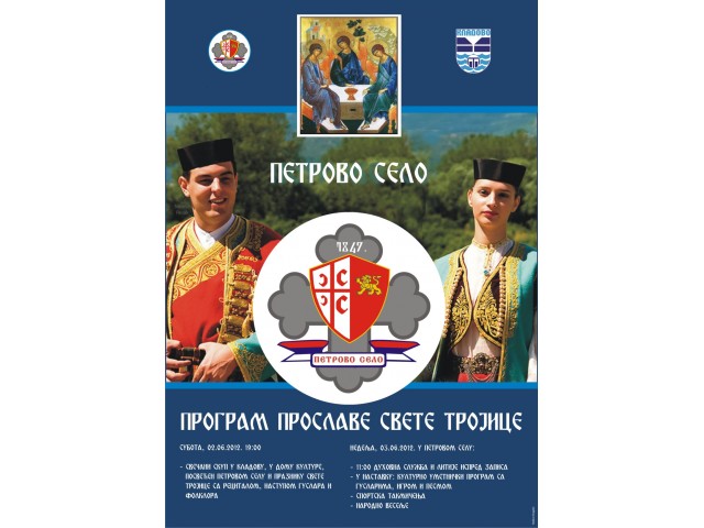01.06.2012.Proslava Svete Trojice (Duhovi) u Petrovom Selu obeležiće se u subotu 02. juna 2012. godine svečanim skupom od 19,00 sati u Centru za kulturu Kladovo. Prigodnim recitalom, nastupom guslara i foklora, najaviće se nastavak druženja 03. juna u samom Petrovom Selu, kada će u 11,00 sati biti održana duhovna služba i litije ispred zapisa, potom kulturno umetnički program sa igrom i pesmom i sportska takmičenja.