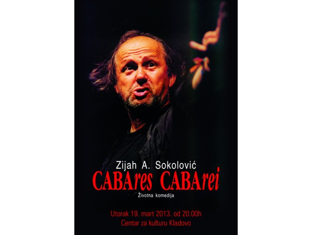 11.03.2013.Kultna monodrama glumca Zijaha Sokolovića koja već 20 godina puni pozorišne dvorane „CABAres CABArei“ i koja se približava 1160. izvođenju, gostuje u Kladovu u utorak 19. marta 2013. godine na velikoj sceni Centra za kulturu od 20,00 sati.